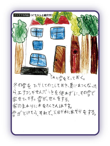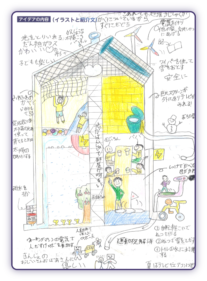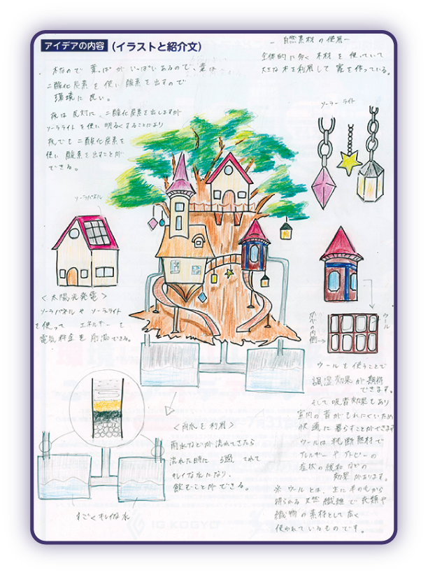 アイジー工業創立55周年を記念し、山形県内の小中学生を対象に、「環境にやさしい未来の家」をテーマとしたアイデアを募集。子どもたちの自由な発想と創造力を引き出すことを目的に、アイデアコンテストを行いました。