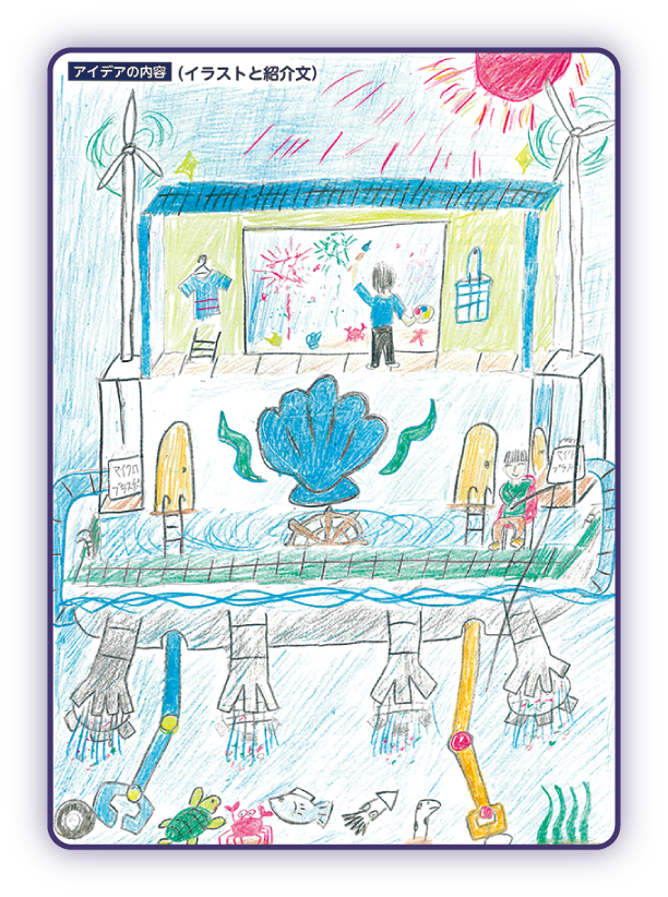 ・海の中の機械で小さいゴミやマイクロプラスチックを吸い込み、大きいゴミはロボットハンドで回収できる